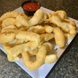 Battered eggplant rolled then stuffed with ricotta, parmesan, spices, sauce & mozzarella.